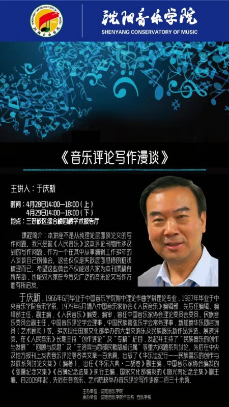 讲座预告|于庆新——《 音乐评论写作漫谈》