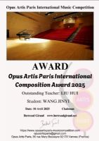 法国OPUS ARTIS巴黎国际作曲比赛在2025年4月份举办,目的在于挖掘和培养更多年轻的青年作曲家投入到艺术创作生涯中,为新生代音乐力量提供一个良好的艺术成长平台。