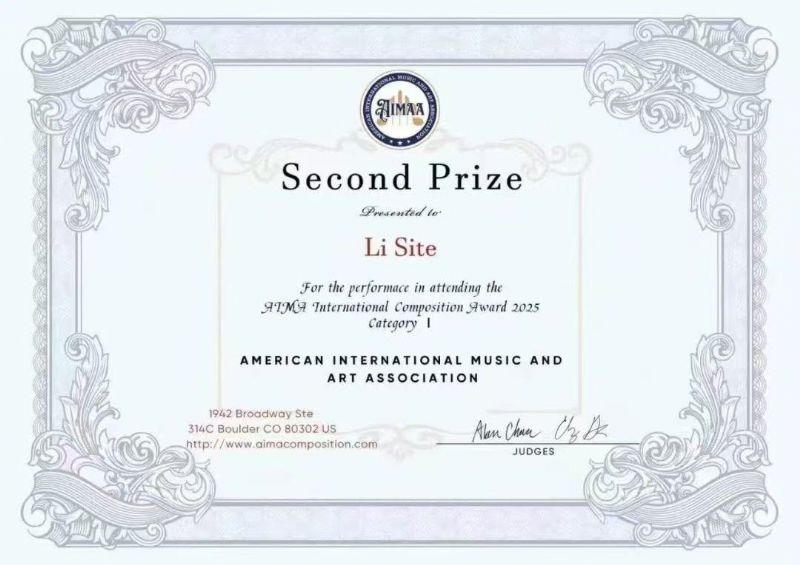 在2025第三届美国AIMA国际作曲比赛中,2022级本科生李思特创作的《Archaeopteryx》——为铜管五重奏与三件打击乐而作荣获二等奖。(指导教师:刘晖)