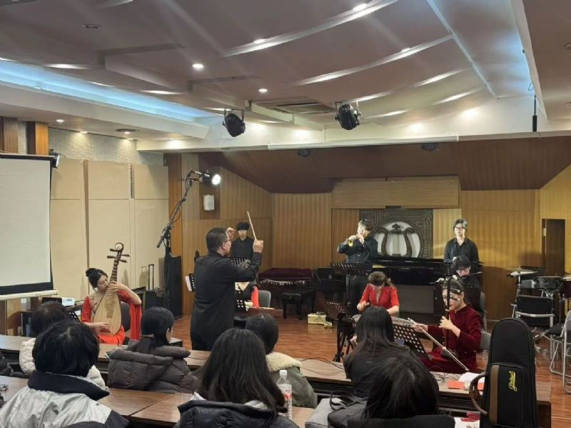 为强化先锋引领,涵养优良学风,发挥学生会组织服务同学的职能,促进专业交叉融合发展,12月16日,作曲系学生会联合民族器乐系学生会共同主办的“音序之间”学术交流沙龙暨原创民族室内乐作品试奏会在三好校区综合楼1楼学术报告厅成功举办。作曲系主任韩焱,党总支副书记肖晓菲,副主任陈思民族器乐系分团委书记王艺霏、作曲系分团委书记齐悦,部分专业教师等出席本次活动。