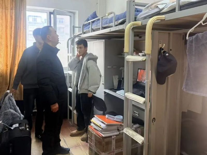 走访中,系领导一行与同学们亲切交流,细致询问返校行程、假期收获与新学期学业规划,耐心倾听并解答了大家在学习、生活中的问题与诉求,让同学们感受到真切的关怀。同时,一行人还重点排查寝室用电安全、卫生环境及设施设备情况,严查安全隐患,叮嘱学生遵守寝室管理规定,对现场发现的设施问题逐一记录并协调维修。