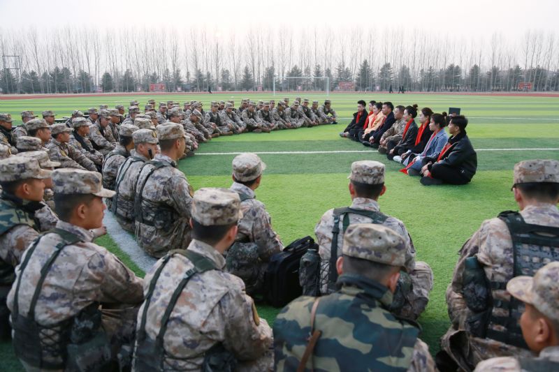 师生们每到一处都受到战士们的热情欢迎。训场上、连队里、哨所中和鸭绿江大桥旁,师生和战士们促膝交谈、热情互动,既为新时代戍边卫士们火热的爱国情怀和坚毅的报国之志所感动,更为刚下雪域高原又二度走进边防哨所奉献青春的战士流下泪水,感恩为我们守护安宁,为国家奉献青春,敢于牺牲自己的戍边战士,正是他们的奉献、坚守和牺牲才有了和平年代我们幸福的生活,是他们的负重前行为我们换来了一方安宁。演出结束后,同学们立志要像雷锋那样:做“一滴水”滋润土地、做“一颗钉”闪闪发光、做“一片叶”清新空气。