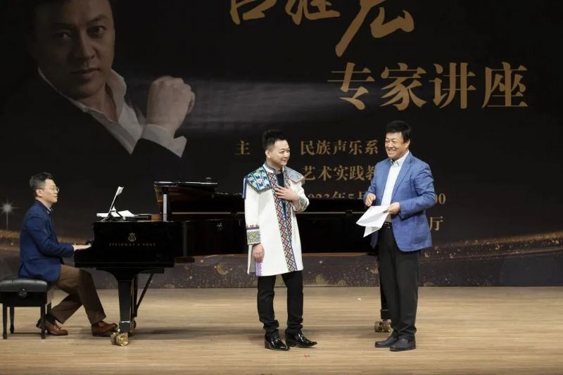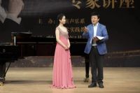 讲座中,民族声乐系金钟奖入围学生马晓芮演唱了《信天游》《红旗颂》,张祥云演唱了《我的爱人你可听见》《哥哥撑排走丹江》,吴斌菲演唱了《来生来世把你爱》《阿里郎组曲》,周建凯演唱了《钗头凤》《大江东去》,李文跃演唱了《我的情歌》《走进香巴拉》,葛子琪演唱了《沂蒙山永远的爹娘》《美丽的阿瓦尔古丽》,吕继宏老师针对这几位学生的演唱,提出了很多有益建议。歌唱方法方面,吕老师指出,高音前的几个字和高音要在一个位置上,演唱中既不能声音“里出外进”,又不能不咬字,要在一个歌唱位置上把歌词“说”清楚。音乐处理方面,吕老师指出,歌唱线条讲究抑扬顿挫,演唱者必须要激动,内心节奏要走在钢琴伴奏的前面。结合歌词表现方面,吕老师指出,歌唱中声音应该流动往前走,要把歌词“说”给观众听,要学会根据语气进行歌词的演唱。三个多小时的讲座中,吕老师身体力行示范讲解,同学们不时以掌声表达对吕老师教学内容的喜爱,讲座取得圆满成功。