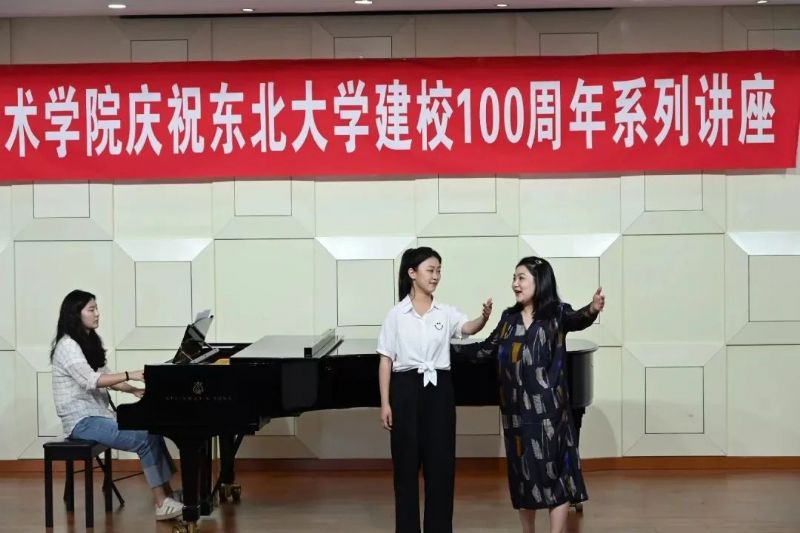 为进一步加强互学共鉴,密切校际学术交流,2023年6月7日,民族声乐系主任匡祎教授应邀于东北大学举办“我的民族声乐教学观——自然的歌唱”教学公开课暨“百年校庆大讲堂”活动。作为东北大学建校100周年学术系列活动之一,本次活动受到东北大学艺术学院的高度重视。东北大学艺术学院院长张燕楠,艺术学院音乐系主任张杨,副主任兼声乐教研室主任卜冠一,音乐系声乐教研室全体教师及本科学生出席活动,我系杨立军教授、李超老师、郭俞池老师及学生代表出席了本次活动。