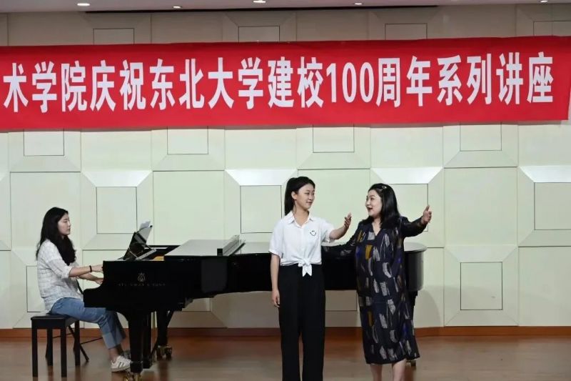 为进一步加强互学共鉴,密切校际学术交流,2023年6月7日,民族声乐系主任匡祎教授应邀于东北大学举办“我的民族声乐教学观——自然的歌唱”教学公开课暨“百年校庆大讲堂”活动。作为东北大学建校100周年学术系列活动之一,本次活动受到东北大学艺术学院的高度重视。东北大学艺术学院院长张燕楠,艺术学院音乐系主任张杨,副主任兼声乐教研室主任卜冠一,音乐系声乐教研室全体教师及本科学生出席活动,我系杨立军教授、李超老师、郭俞池老师及学生代表出席了本次活动。