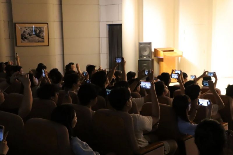 在同学们的一致邀请中,于海洋为大家演唱了《爱永在》《我的情歌》,在师生们热烈的掌声中,分享会圆满结束。