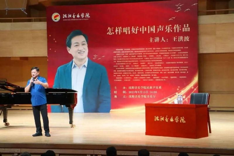 为进一步提升教育教学水平,加强内涵建设,9月15日民族声乐系邀请著名男高音歌唱家、声乐教育家,中国音乐学院声歌系教授、博士生导师王洪波举办《怎样唱好中国声乐作品》学术讲座暨教学公开课。讲座在我院音乐厅举办,民族声乐系全体师生参加活动,讲座由民族声乐系副主任沈德鹏主持。