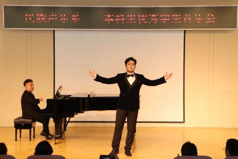 音乐会现场座无虚席,气氛热烈。学生以饱满的热情和精湛的演唱,为全系师生带来了一场视听盛宴。演唱曲目涵盖了地方色彩鲜明的民歌、意蕴深厚的古诗词艺术歌曲、跌宕起伏的歌剧选段以及独具时代特色的创作歌曲。这些曲目不仅展示了学生们的演唱技巧,更检验了他们对作品的诠释和舞台的表现力。学生们通过细腻的表演和深情的演唱,赢得了现场观众的阵阵掌声和喝彩,将每一个角色、每一句诗词都诠释得入木三分,音乐会在一曲悠扬的歌声中缓缓落下帷幕,但学生们对民族声乐的热爱与追求却永远不会停歇。此次音乐会的成功举办,不仅为学生们提供了一个展示自我、锻炼艺术实践能力的平台,更促进了民族声乐艺术的传承与发展。