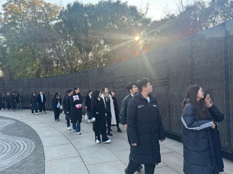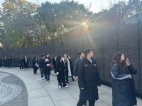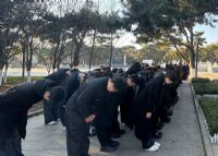 活动当天,在讲解员的带领下,同学们参观了英烈纪念馆。纪念馆通过大量的史实、影像资料以及浮雕、声光电等场景复原技术,生动再现了抗美援朝战争的历史全貌。随后,大家跟随讲解员的脚步走进墓园,通过讲解,崇敬与敬畏无以言表,听着红色故事、英雄事迹,在这苍松翠柏掩映的烈士陵园里,伫立在烈士墓碑前,思绪倒流到上个世纪50年代初期……同学们忍不住热泪盈眶。他们用生命谱写了惊天地、泣鬼神的雄壮史诗,伟大抗美援朝精神跨越时空、历久弥新,必须永续传承、世代发扬。全体学生深深地感受到当时艰苦残酷的战争环境和志愿军烈士们对党和国家、对人民的热爱与忠诚,接受了一次党性洗礼,提振了士气,凝聚了力量,增强了历史使命感和责任感。