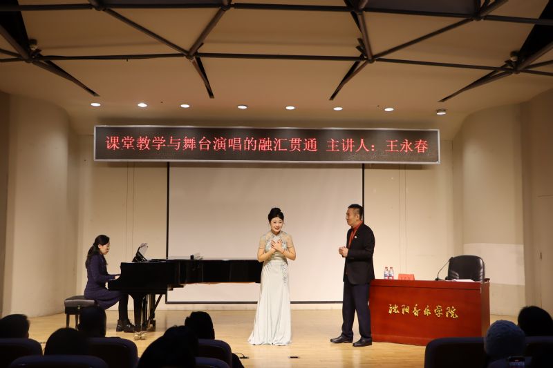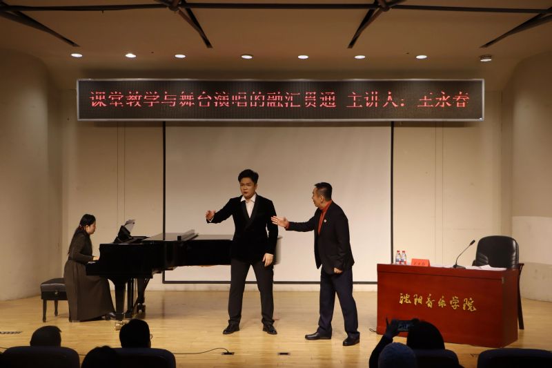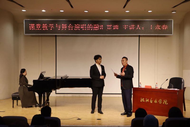 讲座中,王永春结合自身丰富的舞台演唱经验与教学实践,深入探讨了课堂教学与舞台演唱之间的紧密联系与融合之道。他指出,课堂是声乐学习的根基,要注重声乐技巧的系统训练、音乐理论知识的扎实积累以及对作品情感内涵的深度挖掘,为舞台演唱筑牢基础。同时,舞台演唱是课堂所学的实践与升华,需要在舞台上展现出良好的台风、精准的情感表达以及与观众的互动交流能力。他强调,教师在课堂教学中要引导学生建立舞台意识,让学生明白课堂所学最终是为了更好地服务舞台;而学生在舞台实践中遇到的问题,也应反馈到课堂学习中,不断完善自身的演唱能力。