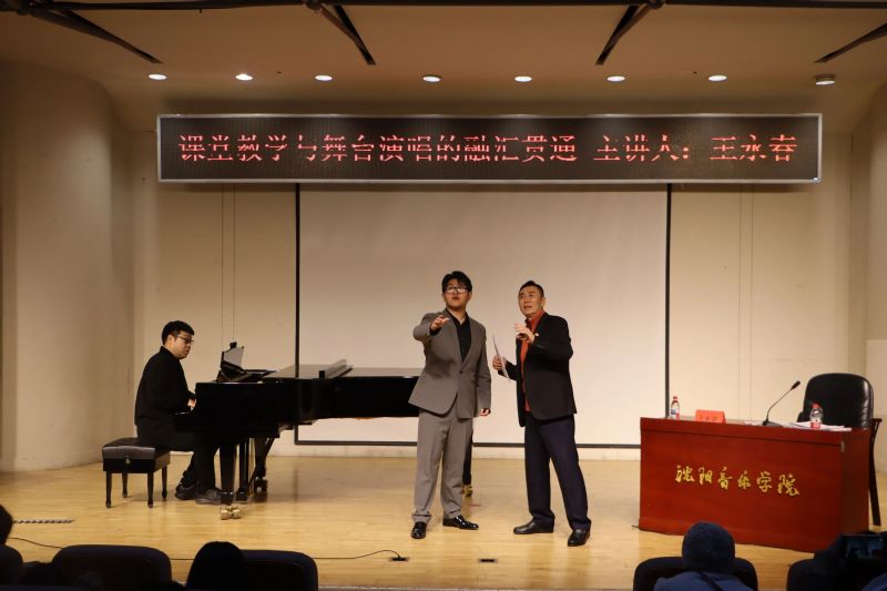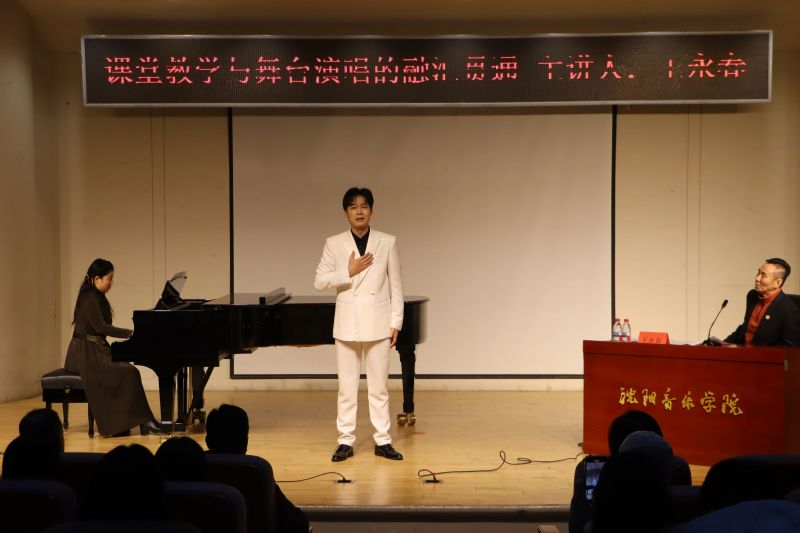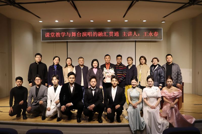 讲座中,王永春结合自身丰富的舞台演唱经验与教学实践,深入探讨了课堂教学与舞台演唱之间的紧密联系与融合之道。他指出,课堂是声乐学习的根基,要注重声乐技巧的系统训练、音乐理论知识的扎实积累以及对作品情感内涵的深度挖掘,为舞台演唱筑牢基础。同时,舞台演唱是课堂所学的实践与升华,需要在舞台上展现出良好的台风、精准的情感表达以及与观众的互动交流能力。他强调,教师在课堂教学中要引导学生建立舞台意识,让学生明白课堂所学最终是为了更好地服务舞台;而学生在舞台实践中遇到的问题,也应反馈到课堂学习中,不断完善自身的演唱能力。