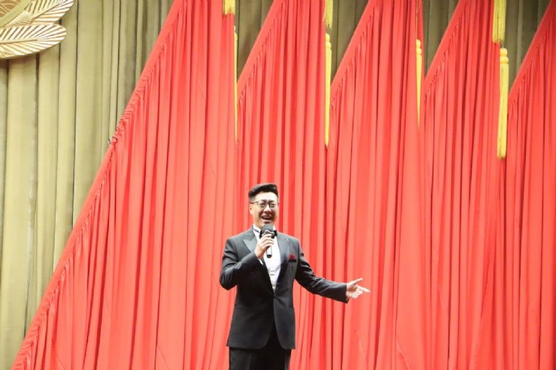 我系青年教师李超倾情演唱《我们的祖国歌甜花香》,深情讴歌家国大爱,将现场气氛推向高潮