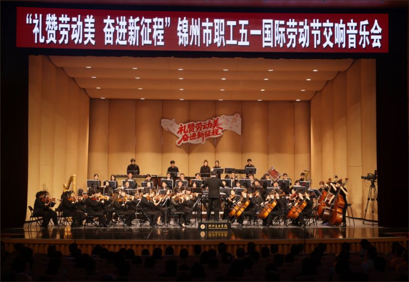 4月28日,沈阳音乐学院2025年“春秋艺韵”春季演出季系列活动——“礼赞劳动美 奋进新征程”锦州市职工“五一”国际劳动节交响音乐会在锦州市工人文化宫成功演出。本次音乐会由锦州市总工会主办,锦州市职工服务中心承办,沈阳音乐学院北方交响乐团与学院师生联袂呈献,以动人乐章礼赞劳动楷模,用高雅艺术弘扬拼搏精神。锦州市人大常委会主任郝建军,市政协主席于鹏,市委常委、统战部部长范丹宇,市人大常委会副主任、市总工会主席袁力,副市长、高新区党工委书记孙志海,学院党委书记赵恒心、副院长庞渤与劳动模范和职工代表近1000名观众共同观看了音乐会。