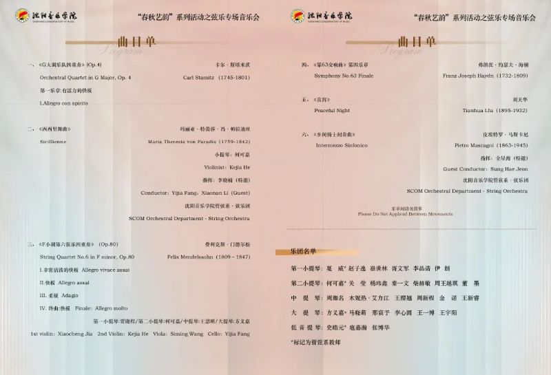 【预告】“春秋艺韵”系列活动之管弦系弦乐专场音乐会