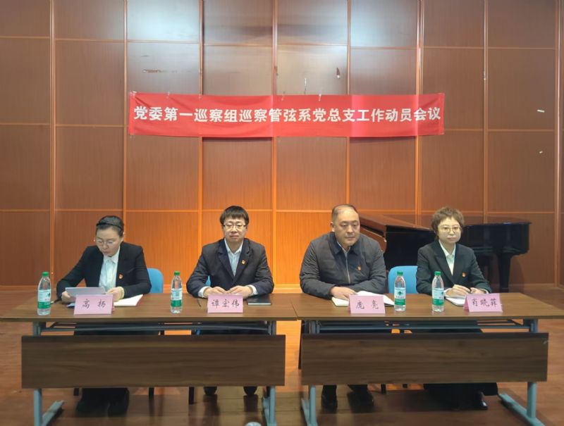 会前,组长谭宏伟主持召开与管弦系党政主要负责人的见面沟通会,通报了有关工作安排。会上,谭宏伟作了动员讲话,对做好巡察工作提出要求。管弦系党总支书记高扬主持会议并作表态发言。